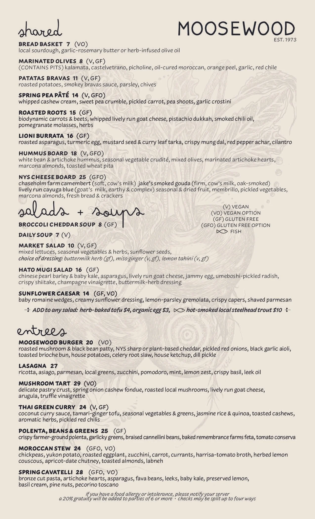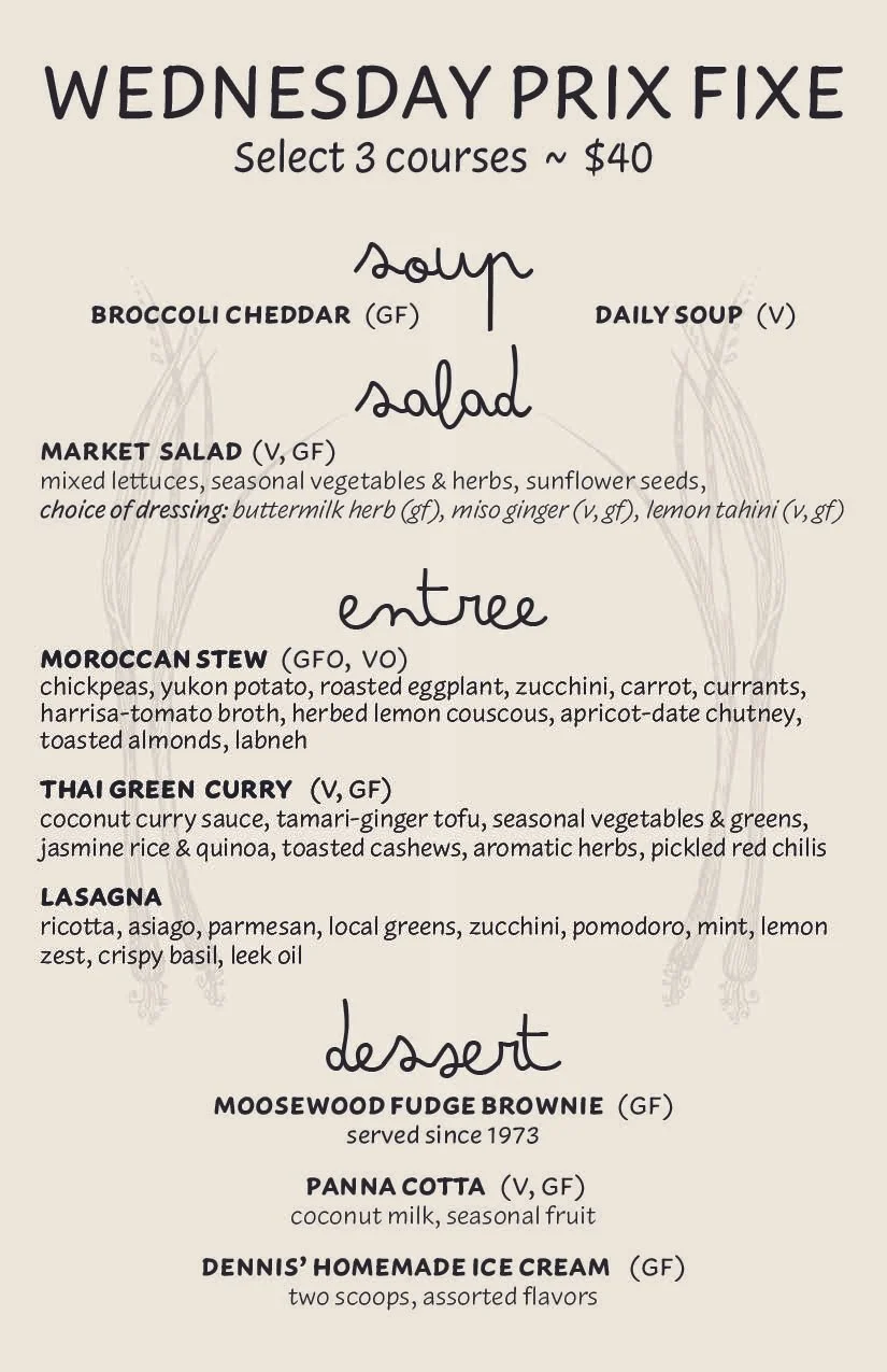 We source our seasonal menu ingredients from local Ithaca farms whenever possible. Our beverage menu features Finger Lakes region wines and ciders, and we proudly serve NYS craft beers, along with a selection of NYS distilled spirits.